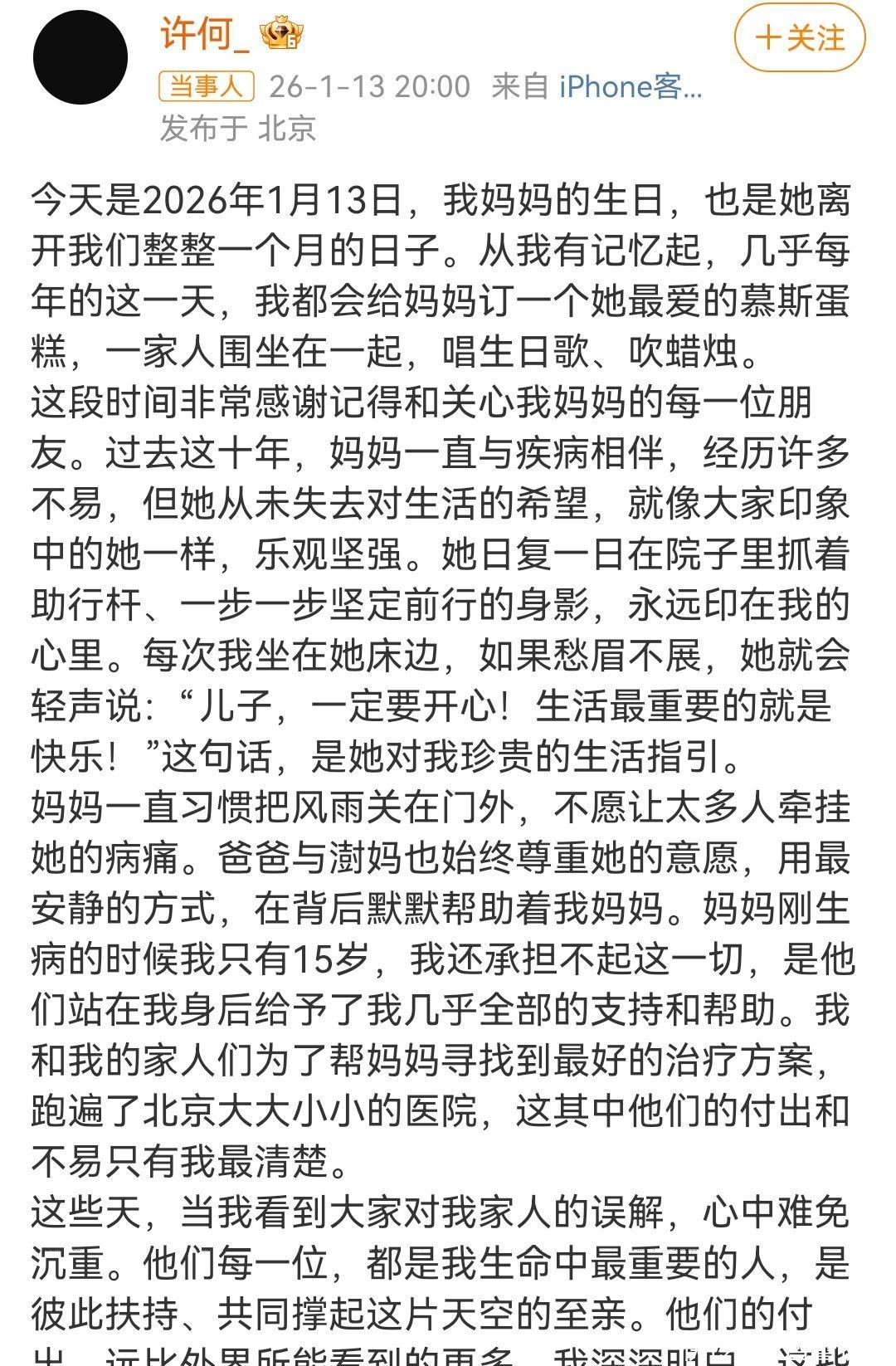 许何这次发声,就是看不下去谣言乱飞。他觉得,这三个他生命中最重要的人,都不该被恶意揣测。作为儿子,他必须站出来,说清真相。